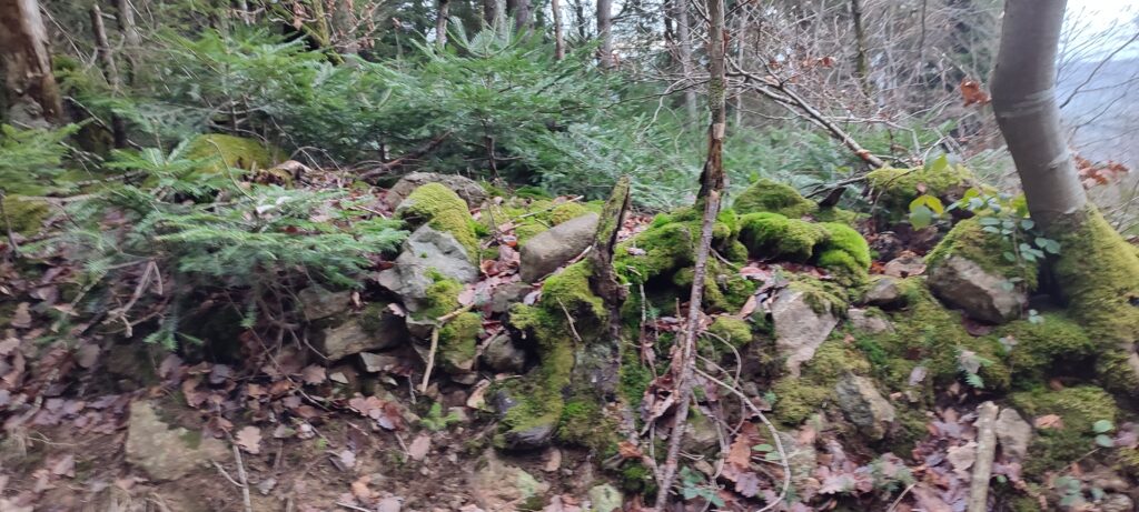 ce site en plein milieu de la forêt porte des traces d’occupation et d’exploitation humaine. il y eu des habitations, une carrière mais surtout la Pierre de Saint Martin dont la légende est liée au diable.